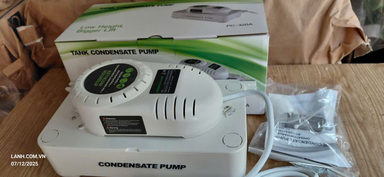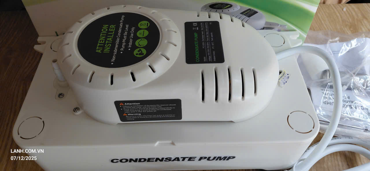 Chuyên dùng cho máy lạnh lắp trong không gian không có chỗ lắp ống thoát nước xả dàn lạnh hoặc vị trí không có độ dốc để thoát nước. Khi nước thải dàn lạnh đầy hộp chứa máy sẽ tự động bơm và ngắt.